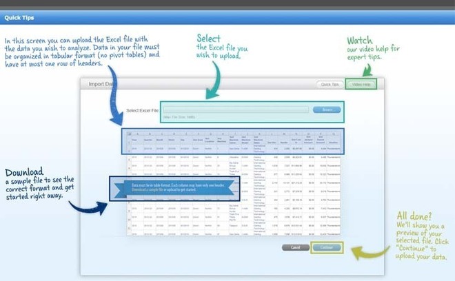 Un simple fichier Excel suffira. Seules contraintes, il ne doit pas s'agir d'un tableau croisé dynamique, et la première ligne doit contenir le libellé des colonnes. Enfantin!