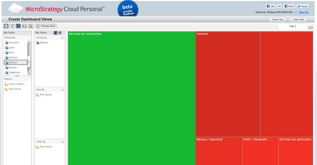 Difficile de faire plus simple. En vous connectant sur le service Cloud Personal que vient d'annoncer Microstrategy et qui est encore présenté comme une version Beta, vous pouvez regarder des vidéos de démonstration, mais si vous êtes un peu dégourdi, le plus simple est sans doute de vous lancer et de tester par vous-même.