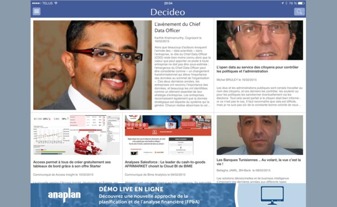 Pour nos annonceurs (c’est grâce à eux que le contenu de Decideo est et restera gratuit, ne l’oublions pas), cette application mobile propose de nouveaux formats de bannières, particulièrement valorisants sur iPad, grâce à un écran d’accueil pleine page et des bannières à la fois discrètes et néanmoins bien visibles, en version paysage et portrait, en bas de page.