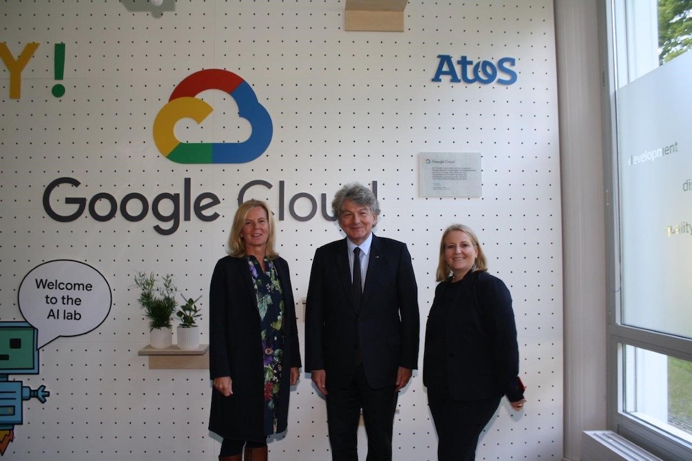 De gauche à droite : Annette Maier, Directrice Générale de Google Cloud DACH, Thierry Breton, Président-Directeur Général d’Atos et Ursula Morgenstern, directrice générale d’Atos en Allemagne