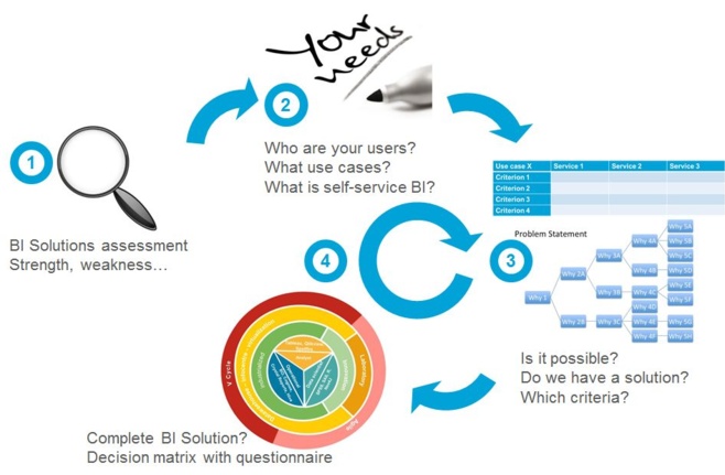 L’instruction de la BI self-service est surtout propre à chaque entreprise au sens où elle ne se limite pas au déploiement de nouveaux outils (pas de « silver bullet ») mais bien de se reposer la question au regard des processus, de l’existant BI et de la culture de l’entreprise. Bref ce n’est pas une mince affaire…