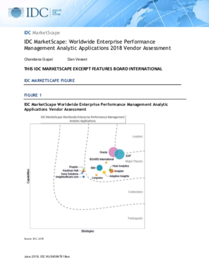 L’éditeur BOARD International a été élu « Major Player » par l’analyste IDC dans sa récente étude IDC Marketscape: Worldwide Enterprise Performance Management Analytic Applications 2018 Vendor Assessment*.