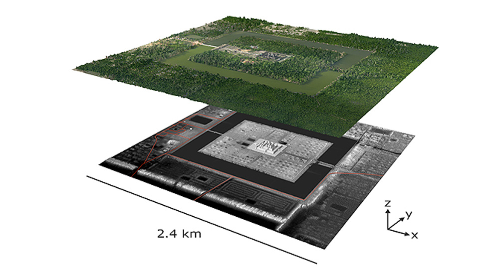 · Au Cambodge à Angkor, le centre urbain de la ville s'étend sur au moins 35 kilomètres carrés, beaucoup plus que les 9 km² conventionnellement reconnus dans les murs d'Angkor Thom, et Mahendraparvata une ville antique jusque-là inconnue a également été découverte.