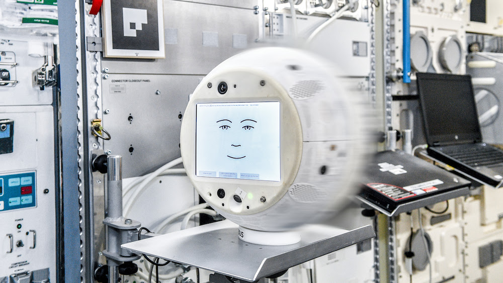 CIMON, qui signifie Crew Interactive Mobile CompaniON, a été développé pour aider les astronautes dans leurs nombreuses tâches et activités de recherche. Le robot flottant à commande vocale, qui fonctionne avec un léger sourire à l'écran, peut afficher des instructions et enregistrer des images pendant une expérience, tout en écoutant et en parlant à l'astronaute.