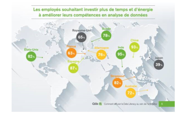 Avec un score moyen de 77,3, la France se positionne juste derrière le Royaume-Uni et l'Allemagne et devant l'Espagne. La France est le 3ème pays européen présentant le plus haut taux de « datalphabétisation » de ses salariés, avec un score moyen de 77,3 selon une étude commandée par Qlik® et...