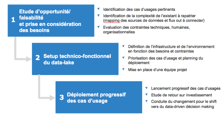 Le déploiement d’un data-lake est facilité par la constitution d’une équipe projet ad hoc bénéficiant d’un solide soutien de la part de la direction.