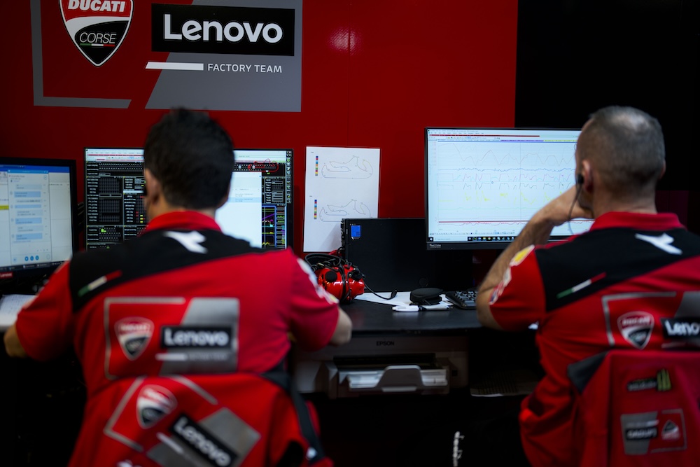 Du siège aux circuits, les équipes de Ducati Corse utilisent une large gamme de PC, tablettes, stations de travail et écrans Lenovo, qu’elles utilisent pour améliorer les opérations, la collaboration et l’analyse des données. Par exemple, les stations de travail mobiles Lenovo ThinkPad P1 accompagnent les ingénieurs en éléctronique jusqu'à la grille de départ, quelques minutes avant la course, lorsque les réglages des motos sont finalisés.