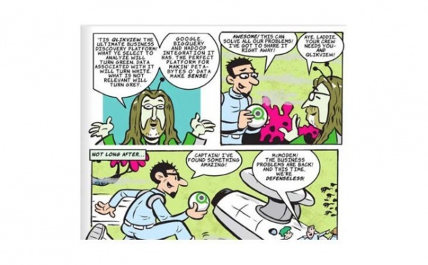 On parle beaucoup depuis hier de Star Wars sur les réseaux sociaux, prompts à parodier le rachat annoncé de Lucasfilm par Disney. Au même moment, QlikView lance une bande dessinée parodique de huit pages consacrée à la Guerre des Etoiles. Un informaticien, McModem, y trouve la solution à ses...
