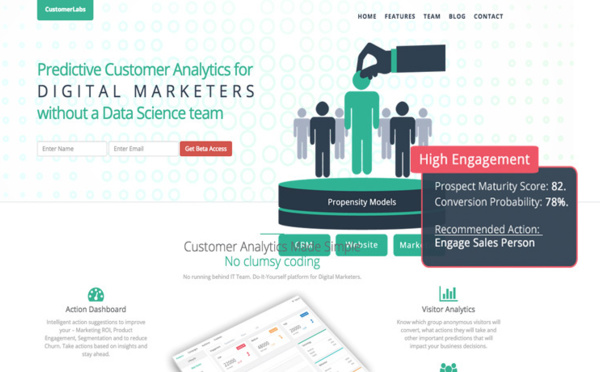 [CustomerLabs]urlblank:http://www.customerlabs.co est une société indienne, qui vous propose de résoudre la crise de disponibilité des data scientists, et leur exigences salariales... en les remplaçant par un logiciel d'analyse prédictive, dédié aux départements marketing digital. Il s'agirait...