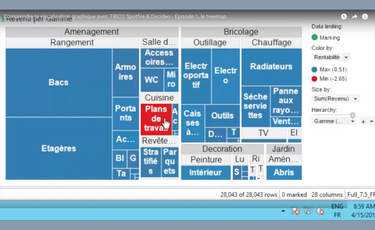 Pour une meilleure lisibilité, optez pour le treemap, ou encore carte proportionnelle ou carte à cases. Dans cette vidéo, vous pourrez voir une démo du potentiel du treemap dans TIBCO Spotfire et en quoi cette solution permet une meilleure visualisation de vos données et de vos résultats