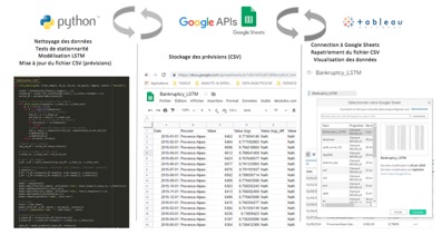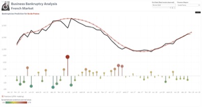 Pour illustrer le propos, voici un exemple de visualisation des prévisions de faillite d’entreprises selon une approche LSTM (Long Short-Term Memory Recurrent Neural Network) programmée en Python et dont les outputs sont réutilisés dynamiquement dans Tableau.