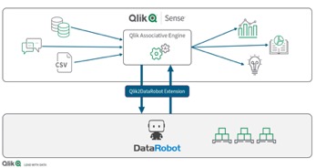 Illustration et mode d’emploi (ci-après) d’une extension DataRobot au sein de Qlik Sense, de sorte à profiter d’une part de toute la puissance du moteur associatif Qlik, et d’autre part des performances de DataRobot en matière de Machine Learning automatisé.