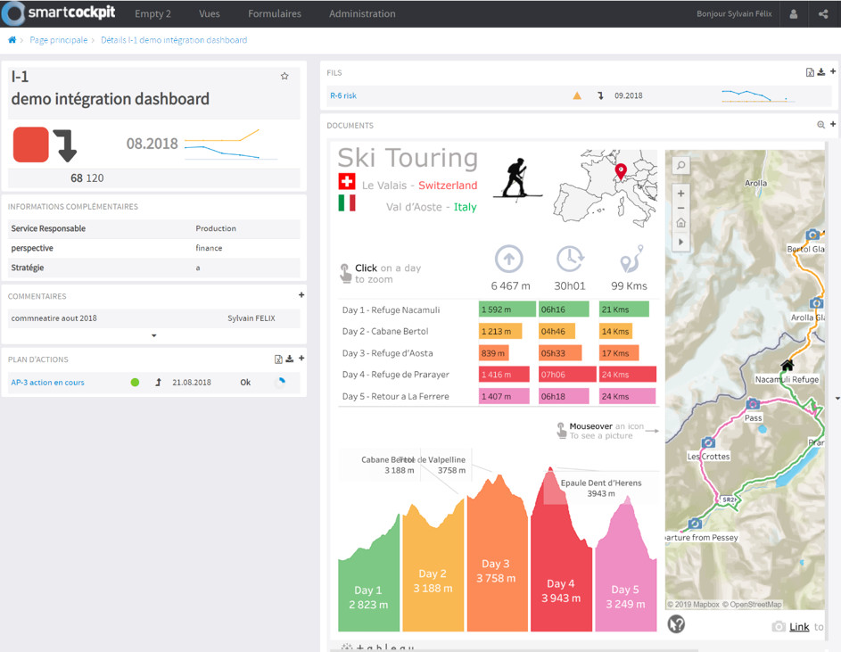 L’intégration de visualisations tierces d’outils tels que Tableau, PowerBi et de nombreux autres simplifie le passage d’une application à une autre et permet de mettre en œuvre une véritable solution de gouvernance digitale.