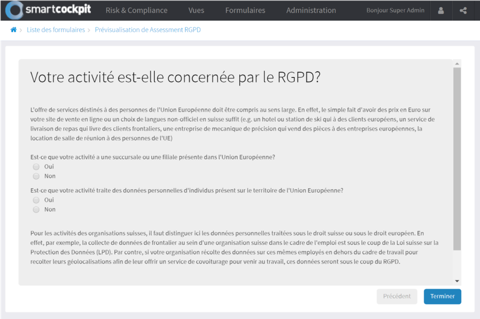 Les développeurs externes pourront dorénavant développer des plug-ins qui seront intégrables dans la plateforme smatcockpit. Pour terminer, nos équipes ont également apportées les corrections nécessaires suites aux remontées utilisateurs. Elles ont également développé une solution de formulaire sous forme de questionnaire qui permet le remplacement de la saisie de smartItem standard et l’exécution auprès d'un ou plusieurs destinataires.