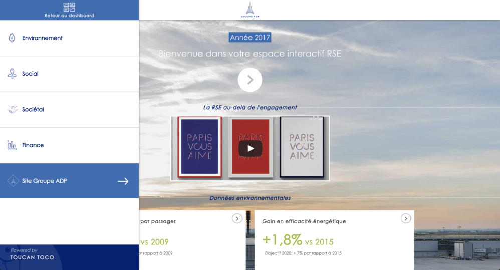 “Le Groupe ADP est un des acteurs de son industrie à avoir été le plus loin technologiquement en offrant un tel niveau d’accessibilité à son information RSE pour ses parties prenantes.” partage Charles Miglietti, Président et co-fondateur de Toucan Toco.