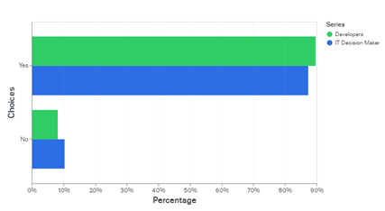 Et cet alignement sur les priorités commerciales se retrouve jusqu’à la prise de décision proprement dite. Plus de 90 % des développeurs interrogés pensent que les décideurs IT prennent la bonne décision lors de l’achat d’un nouveau logiciel et - le croiriez-vous ? - ce chiffre est supérieur que celui exprimé par les décideurs IT eux-mêmes sur leurs propres décisions.