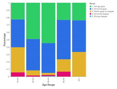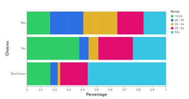 La taille des échantillons diminue avec l’examen des résultats par groupe démographique. Parfois en dessous de 50 personnes. De tels échantillons ne sont pas statistiquement aussi solides que l’échantillon complet. Cependant, en examinant les données et les tendances que nous avons dégagées, nous avons pensé que les résultats étaient encore suffisamment intéressants et cohérents pour être utiles et amorcer la discussion. Ce n’est pas parole d’évangile, ce n’est pas le dernier mot, c’est juste l’indication d’une tendance possible.