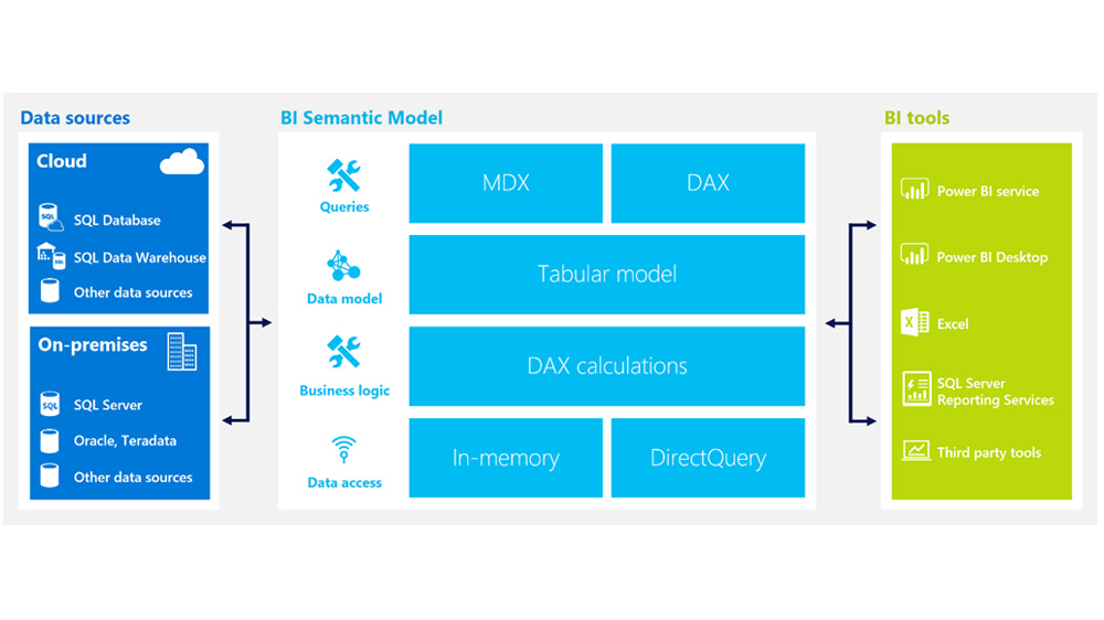 En s’appuyant sur SQL Server Analysis Services, Azure Analysis permet de stocker et préparer l’ensemble de ses données dans le nuage Azure, y compris la modélisation multidimensionnelle pour les utilisateurs. Mais dans un premier temps, il semble que seules les modèles tabulaires soient connectables en ligne; les modèles multidimensionnels ne sont pas encore disponibles.
