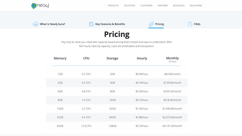 Les tarifs annoncés de Neo4j Aura