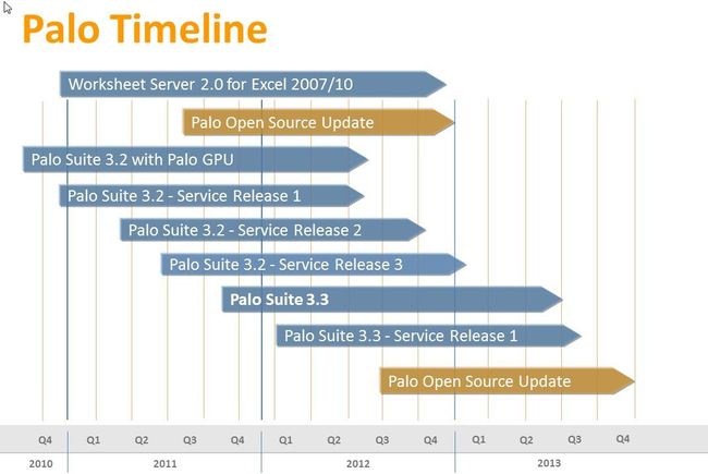 Comme l'indique Jedox dans son plan de versions, la prochaine version importante devrait être Palo Suite 3.3 d'ici deux mois. La prochaine version communautaire est planifiée pour dans un an.