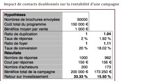 Prenons un exemple (voir tableau) :une entreprise envoie 50 000 brochures à une base de prospects dupliquée à hauteur de 4%. Compte tenu du coût total du programme, estimé à 150 000€, le retour sur investissement de l’opération se limitera à 15,5%, contre 33,3% si l’envoi avait été effectué vers une base de contacts non dupliquée. L’effet de levier que procurent des données de qualité peut donc s’avérer un avantage concurrentiel décisif. A l’inverse, l’absence de confiance dans la donnée implique une perte de confiance dans le système de pilotage de nature à bloquer la prise de décision. Aux Etats-Unis, une étude a estimé le coût de la mauvaise qualité des données à plus de 600 milliards de dollars chaque année pour les entreprises.