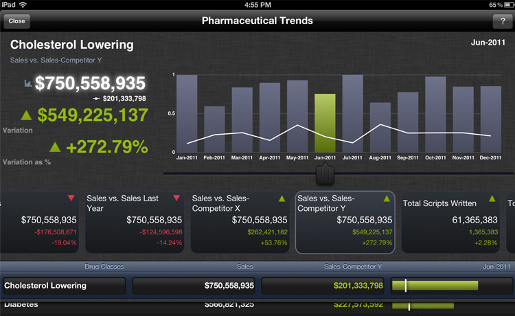 Autre point fort de Roambi, la mise en page. Tableaux, graphiques et textes se combinent pour créer des rapports parfaitement adaptés à la direction générale de l’entreprise.