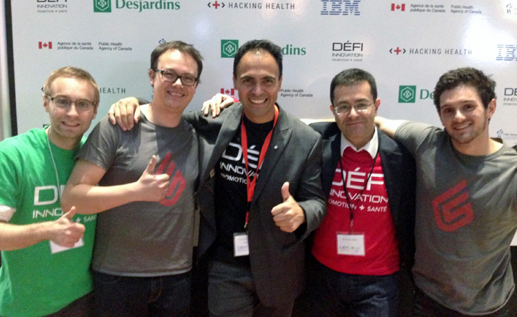 L’équipe de Social Angel, composée de Massimo Caccia, Cédric Toncanier et de Jonathan Muschalle, s’est réunie dès le premier jour du défi, et s’est accordée sur l’objectif général du projet. Ils disposaient de 48 heures pour réaliser une première version fonctionnelle de leur application, et la présenter au jury.