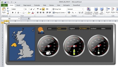 BeGraphic propose évidemment ces graphiques « sparklines » mais également des jauges et des cartes. Tous les utilisateurs référencés du produit se voient proposés un jeu de six mille cartes fournies gratuitement. Point fort de BeGraphic, ses capacités de personnalisation des graphiques qui permettent de l’adapter aux messages mais aussi, plus trivial, aux chartes graphiques et habitudes des entreprises.