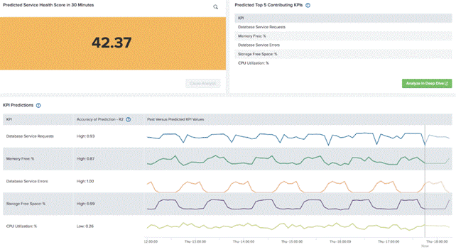 ● La prédiction des KPI fournit des renseignements détaillés sur une dégradation potentielle d’un état de santé de l’entreprise. Elle exploite toute la richesse des données de la plateforme pour prédire des KPI tels que l’expérience client, la charge des applications et l’état de santé de l’infrastructure, afin d’identifier à l’avance les problèmes ou les pannes.