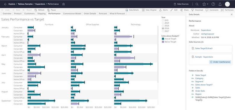 Tableau 2019.3. Cette version apporte d'autres nouveautés, telles que « Explique-moi les données », qui s'appuie sur l'intelligence artificielle pour fournir automatiquement des informations utiles. Pour en savoir plus ou pour effectuer la mise à niveau, rendez-vous sur https://www.tableau.com/fr-fr/products/new-features.