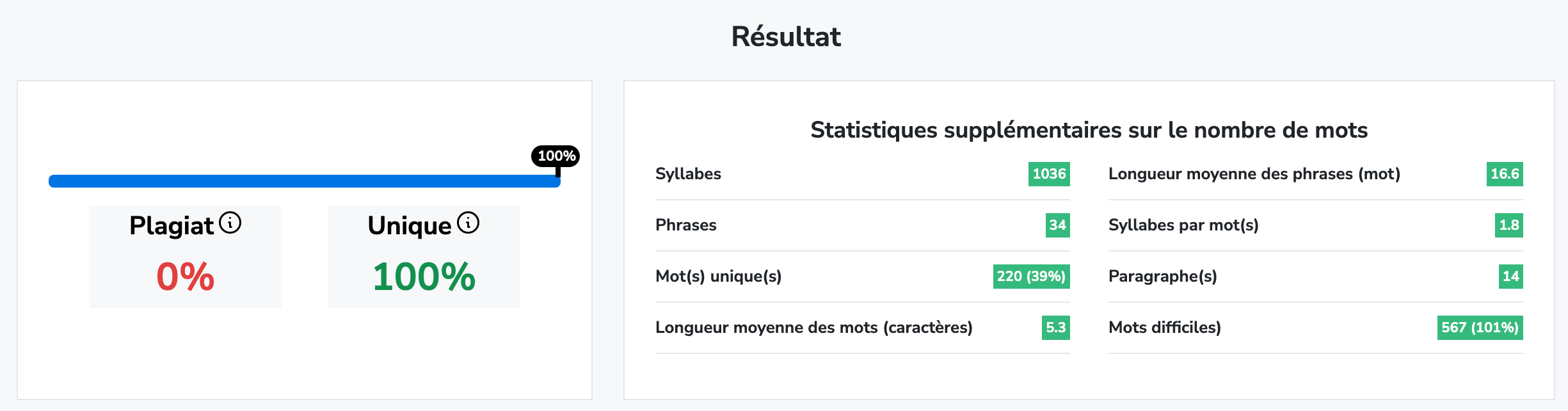 Je me suis tout de même livré à quelques petites vérifications... L'agence revendique que le contenu créé est unique. Il fallait le vérifier. J'ai pour cela soumis les contenus produits à un vérificateur de plagiat.