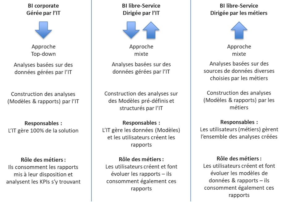 À noter qu’il est possible d’utiliser toutes ces approches de façon parallèle, selon les besoins, les ressources disponibles, et la culture courante de l’IT et des métiers.