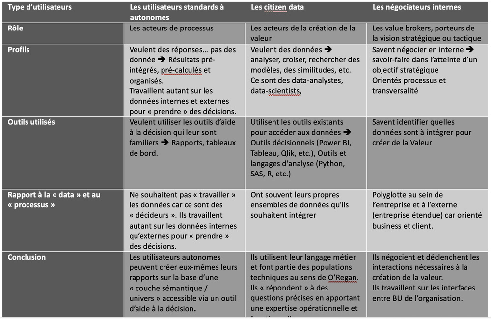 Le tableau ci-dessous catégorise les 3 profils d’utilisateurs d’une data marketplace :