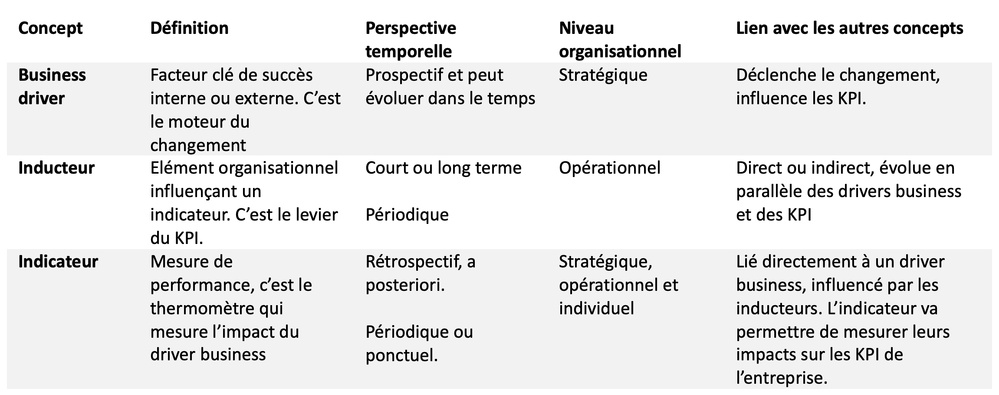 Un driver business, un inducteur et un indicateur : quelles différences ?