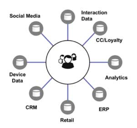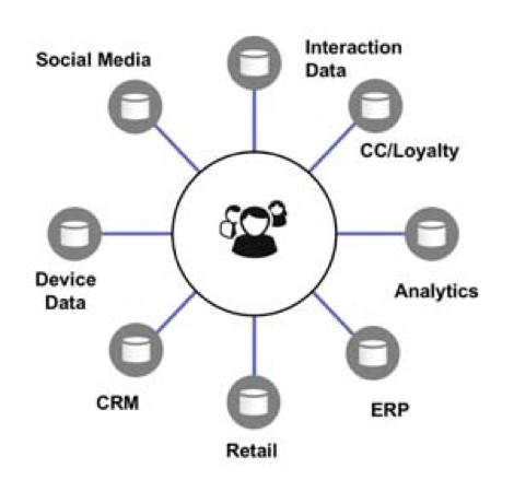 Nous savons que ces technologies sont excellentes. Mais pourquoi sont-elles si peu utilisées par les commerçants ? Le processus est compliqué parce que la connaissance client est généralement dispersée dans des silos différents, chacun doté de son propre cycle de vie et format. Ils n'ont jamais été créés pour constituer une vision unifiée à 360° du client.