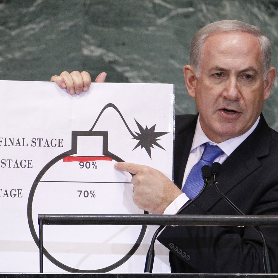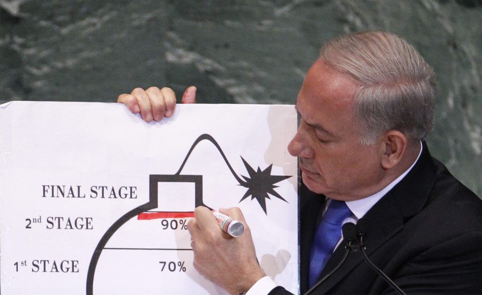 Cette semaine, c’est directement le premier ministre israélien qui y est allé de sa petite infographie(*) en venant à l’ONU présenter le dessin d’une bombe atomique iranienne dont le niveau de remplissage indiquerait le niveau de finalisation.